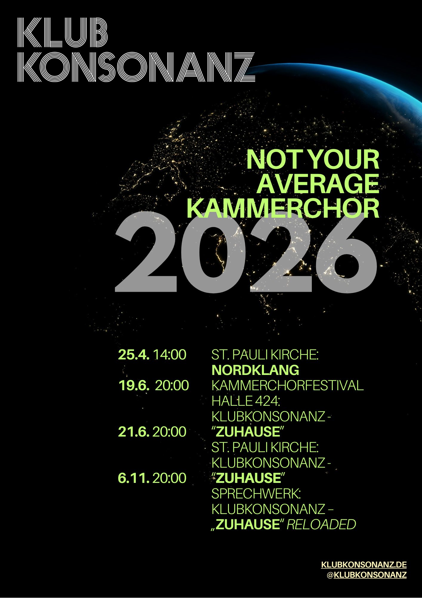 Und sie schweißt zusammen: viel Konsonanz, wenig Dissonanz. Klub Konsonanz ist ein Kammerchor aus Hamburg, auch wenn der Begriff old-school anmutet, und besteht aus 24 Sänger:innen mit Freude am Singen und Besingen.