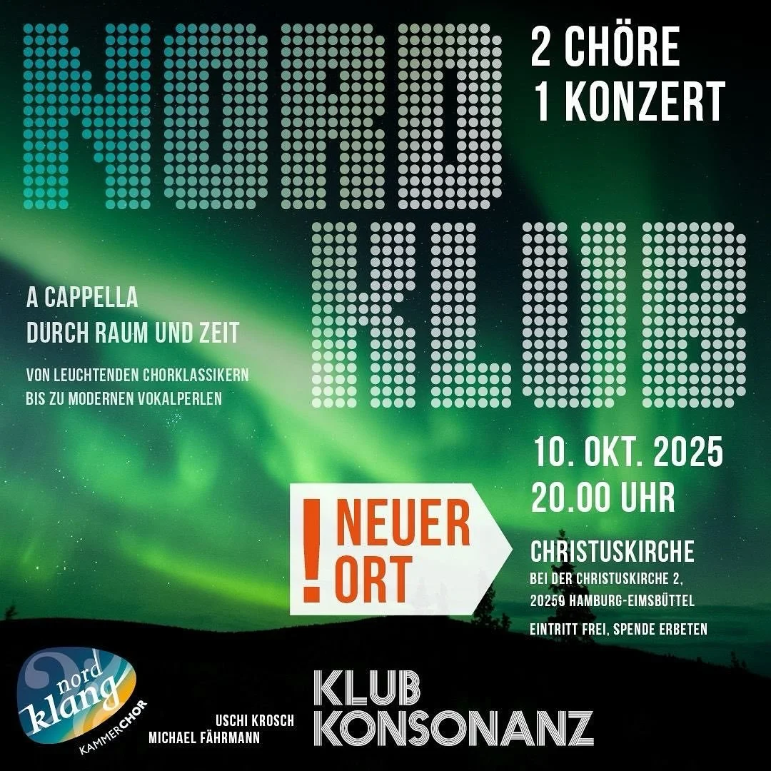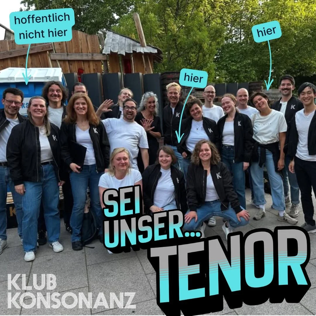 Und sie schweißt zusammen: viel Konsonanz, wenig Dissonanz. Klub Konsonanz ist ein Kammerchor aus Hamburg, auch wenn der Begriff old-school anmutet, und besteht aus plusminus 24 Sänger:innen mit Freude am Singen und Besingen.